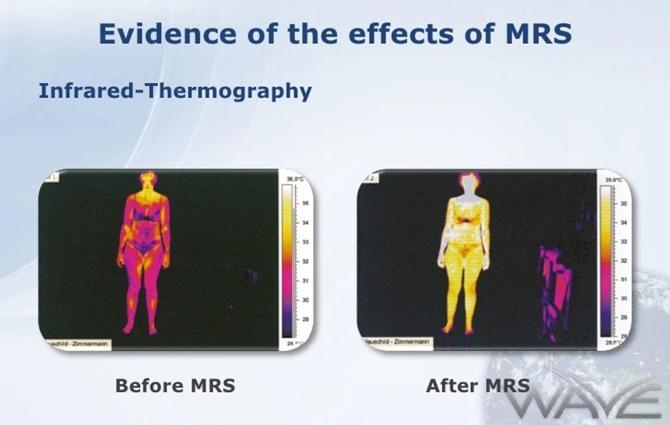 Infrared Thermography Before and Afters with the iMRS show an increase in 3 Degrees in surface skin body temperature.